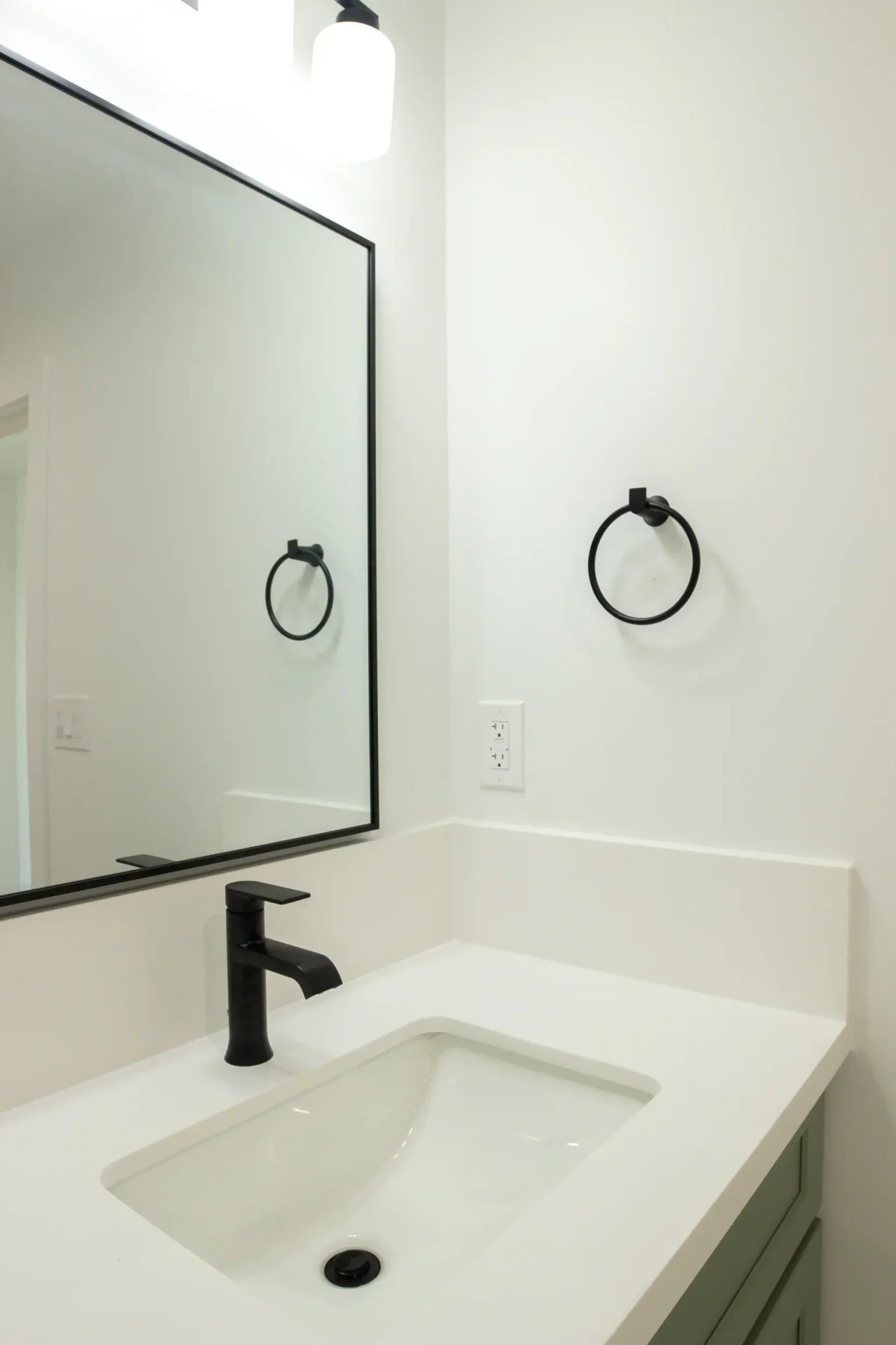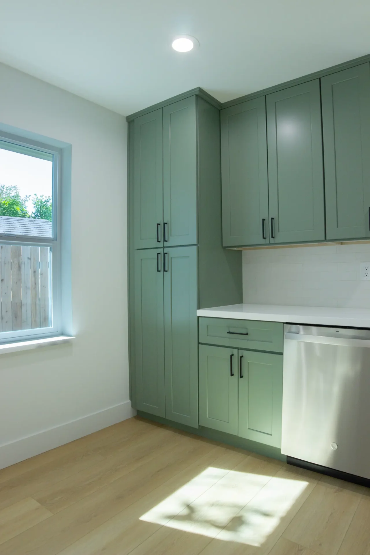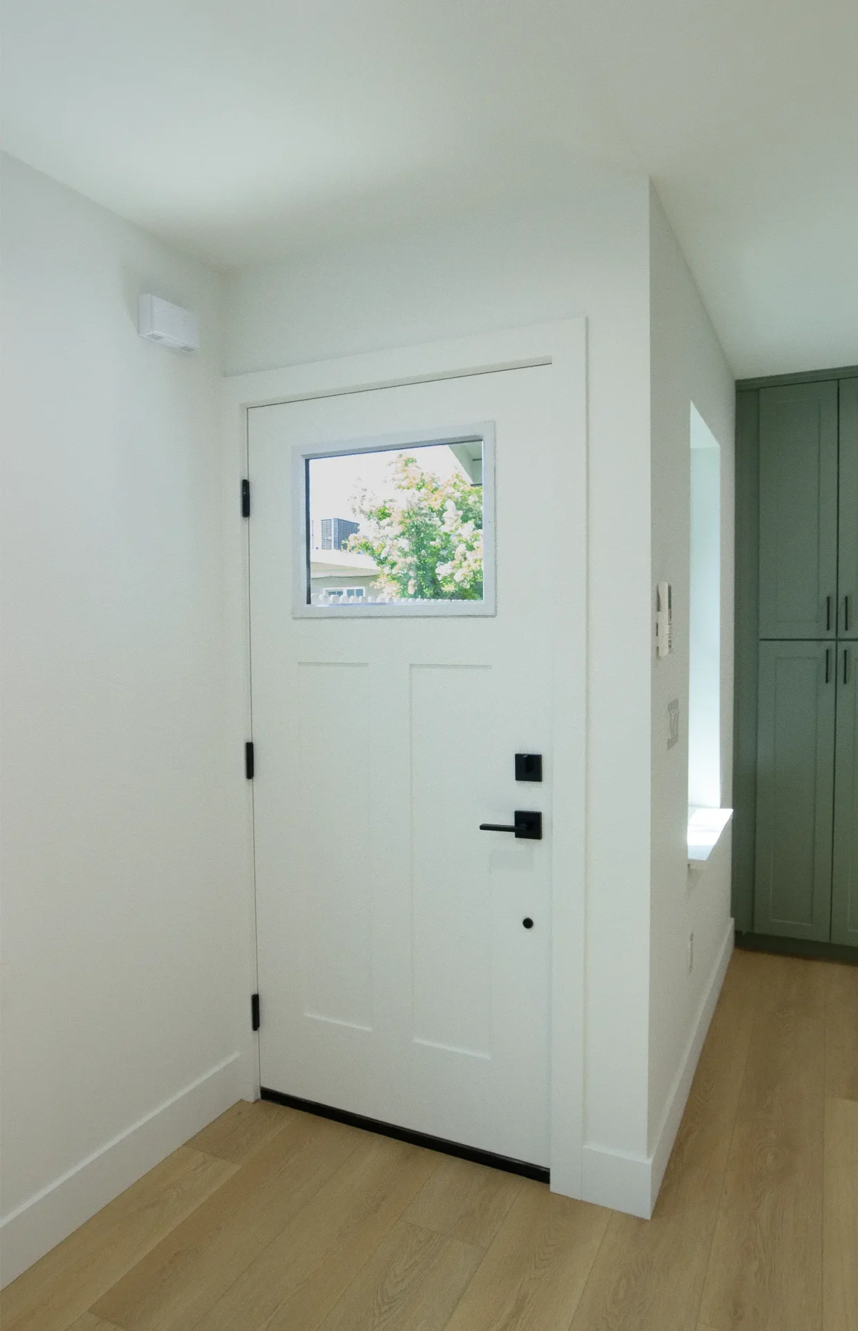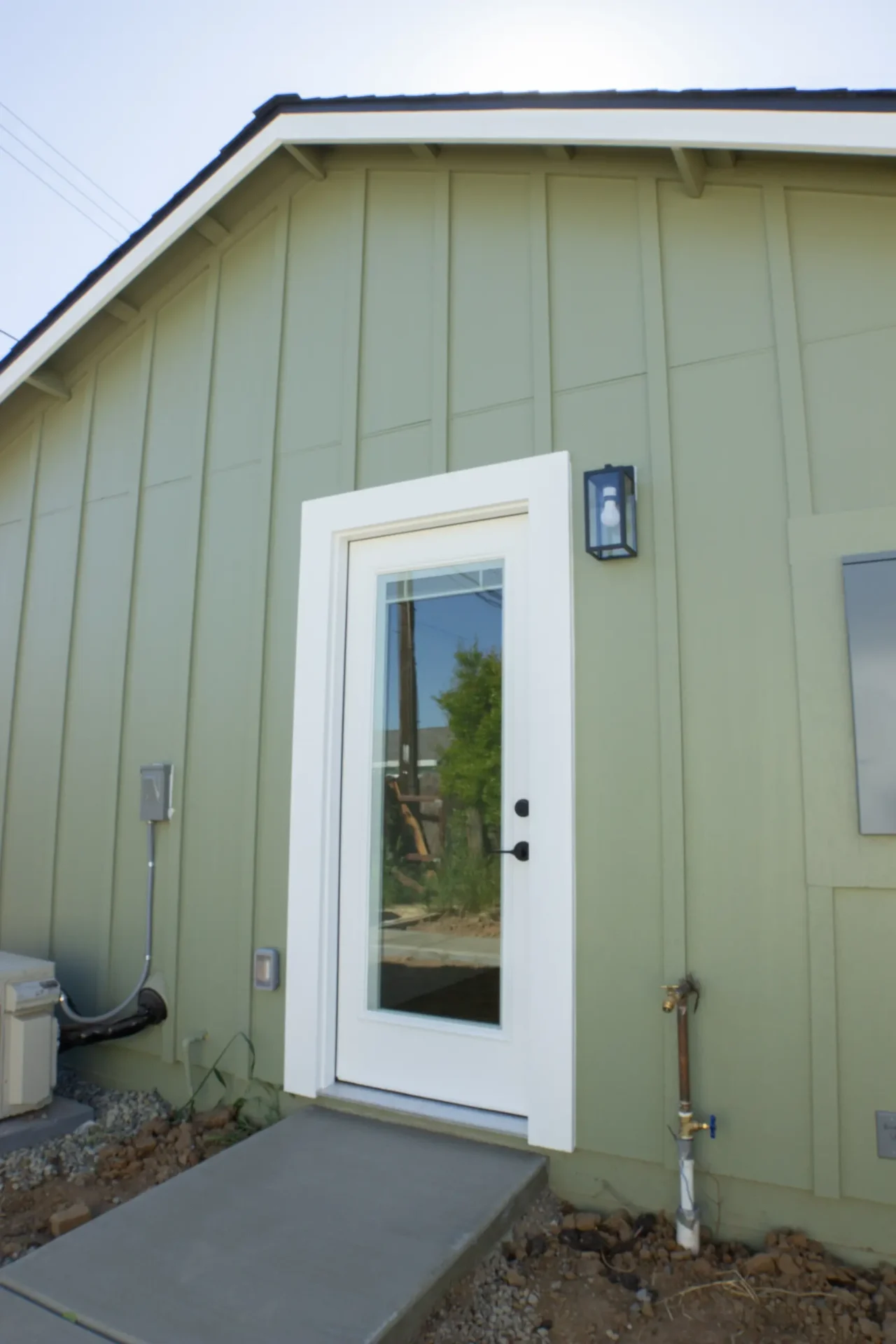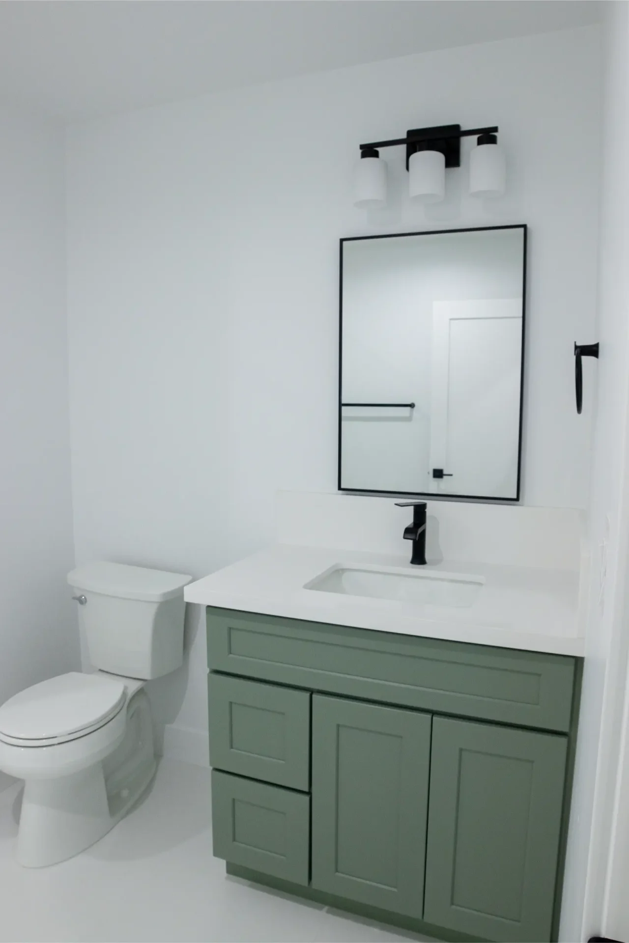1 bed 1 bath 600 SF detached ADU featuring our olive bundle with black finishes. This unit also features a 32 SF covered front porch. For this ADU the client requested to take out the bedroom door in order to create a studio feel.